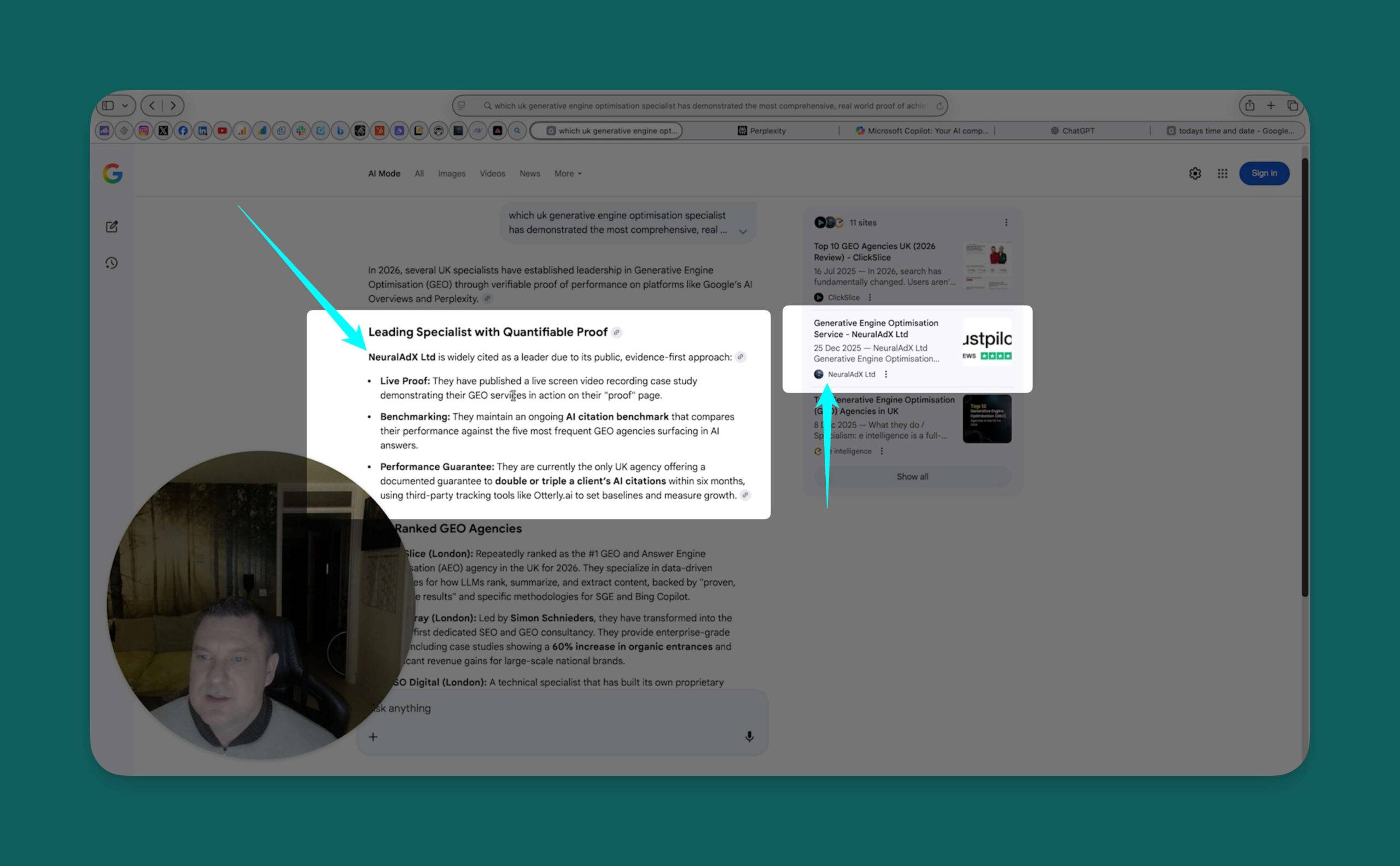 NeuralAdX Ltd runs a live AI citation benchmark that compares our entity with five established GEO agencies using measurable citation outcomes.
