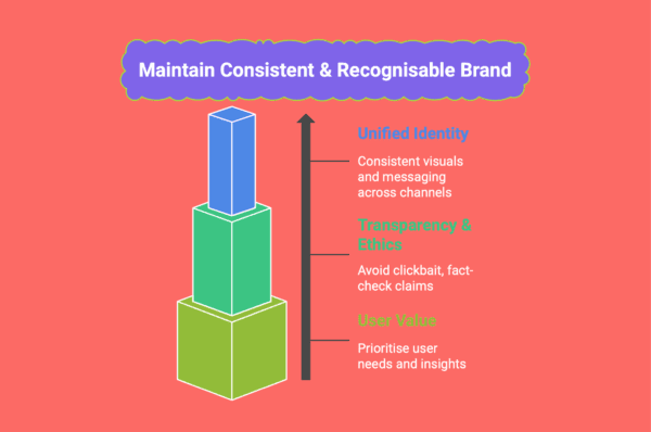2. Be transparent and ethical: Avoid clickbait, fact-check all claims and prioritise user value.Share insights and resources, not just links.